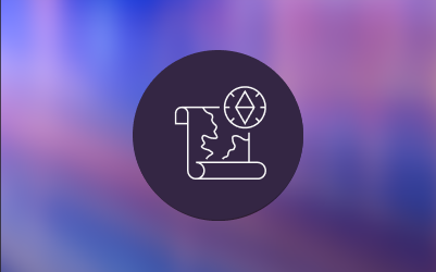 Three layered map tiles inside a circle on a multicolored background